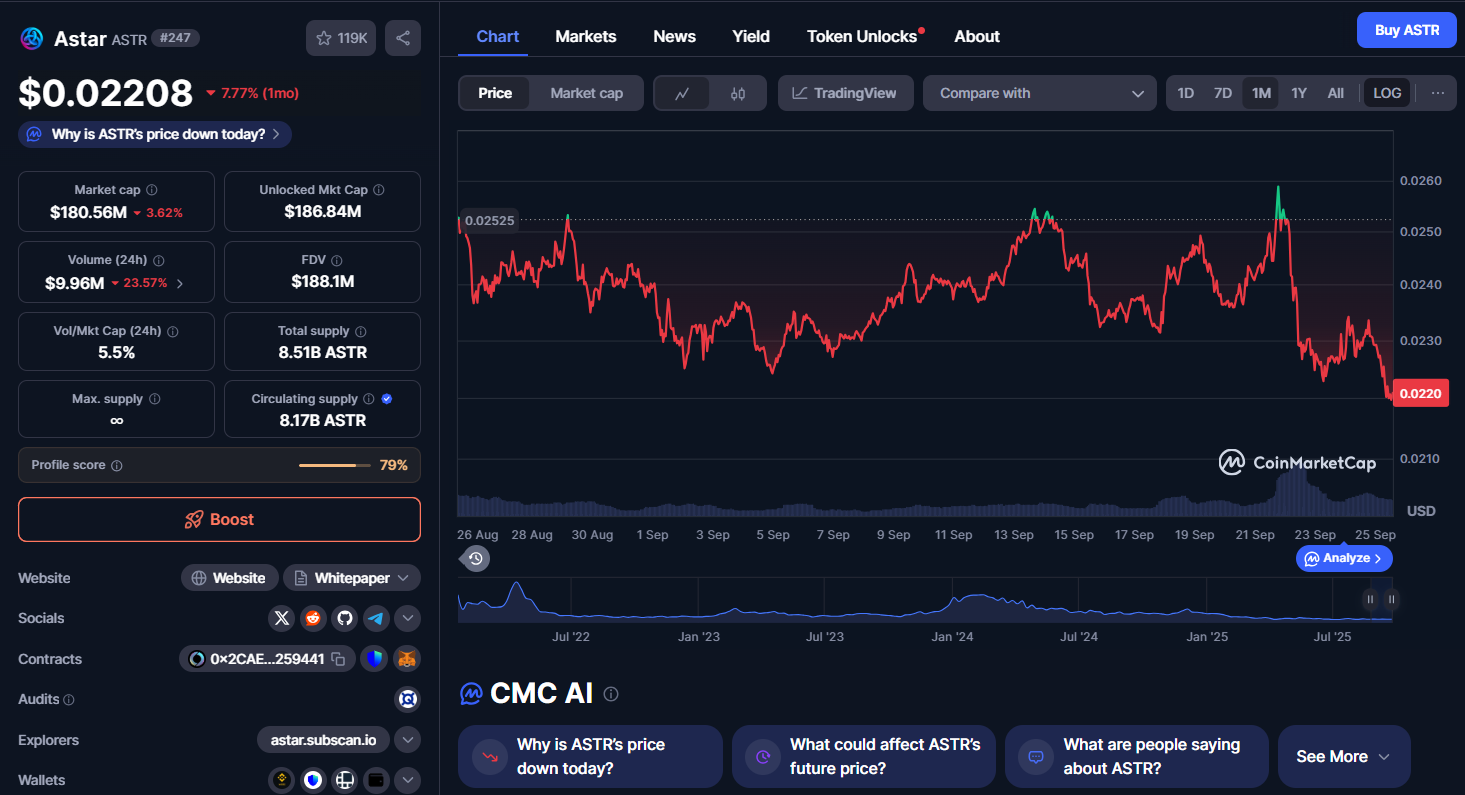 این اعداد نشان میدهد ASTR هنوز پروژهای در مقیاس کوچک محسوب میشود و قیمت آن به شدت به خبرها، تصمیمات حاکمیتی و تغییرات اکوسیستم حساس است.