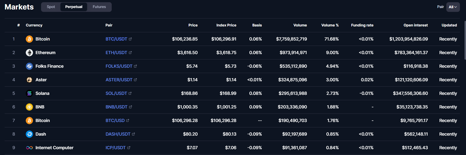 • فاندینگ ریت‌ها به‌صورت لحظه‌ای قابل مشاهده‌اند.