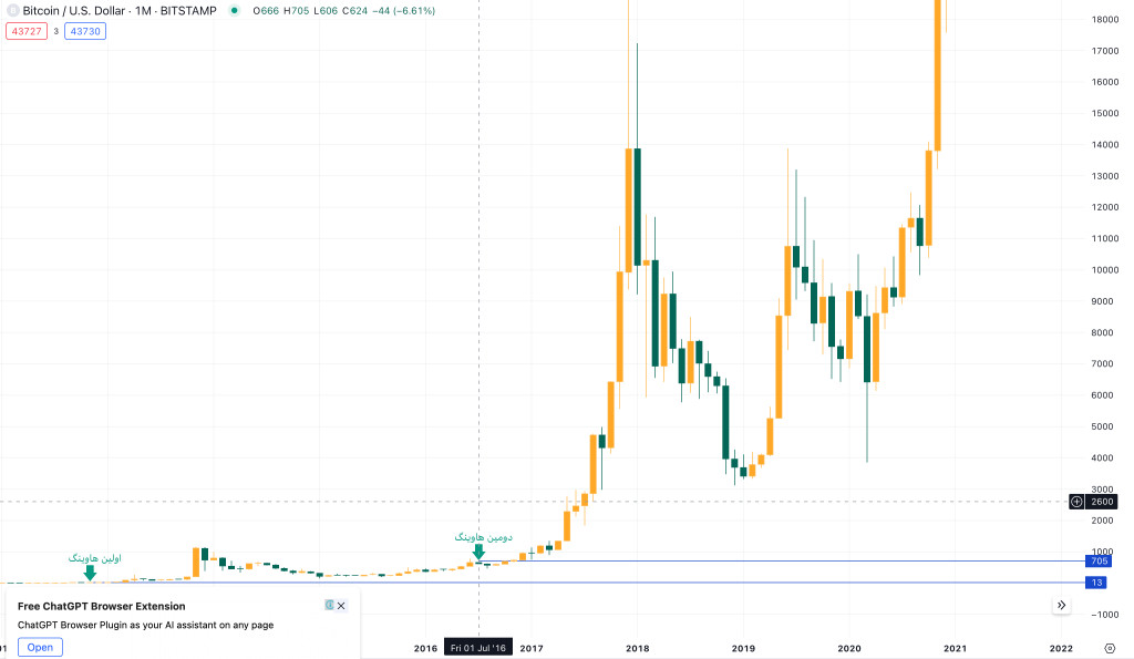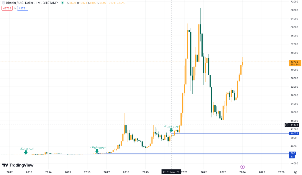 قیمت بیت کوین در هاوینگ های گذشته