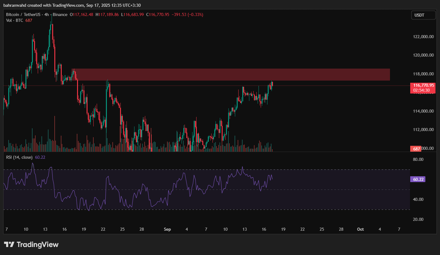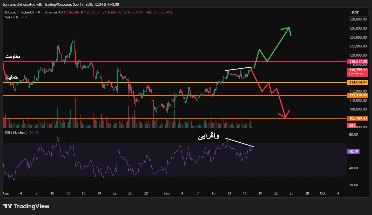 - کلید حرکت بعدی بیتکوین واکنش به مقاومت 118k همزمان با اعلام نرخ بهره خواهد بود.