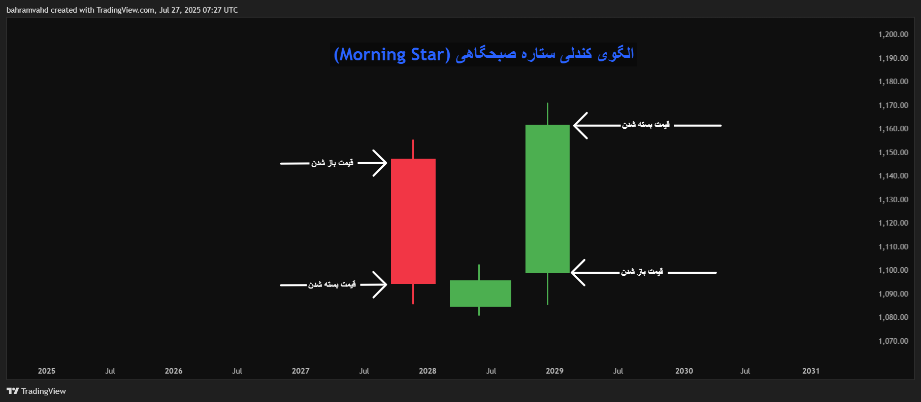 - کاربرد: یکی از معتبرترین الگوهای بازگشتی در روند نزولی میباشد.