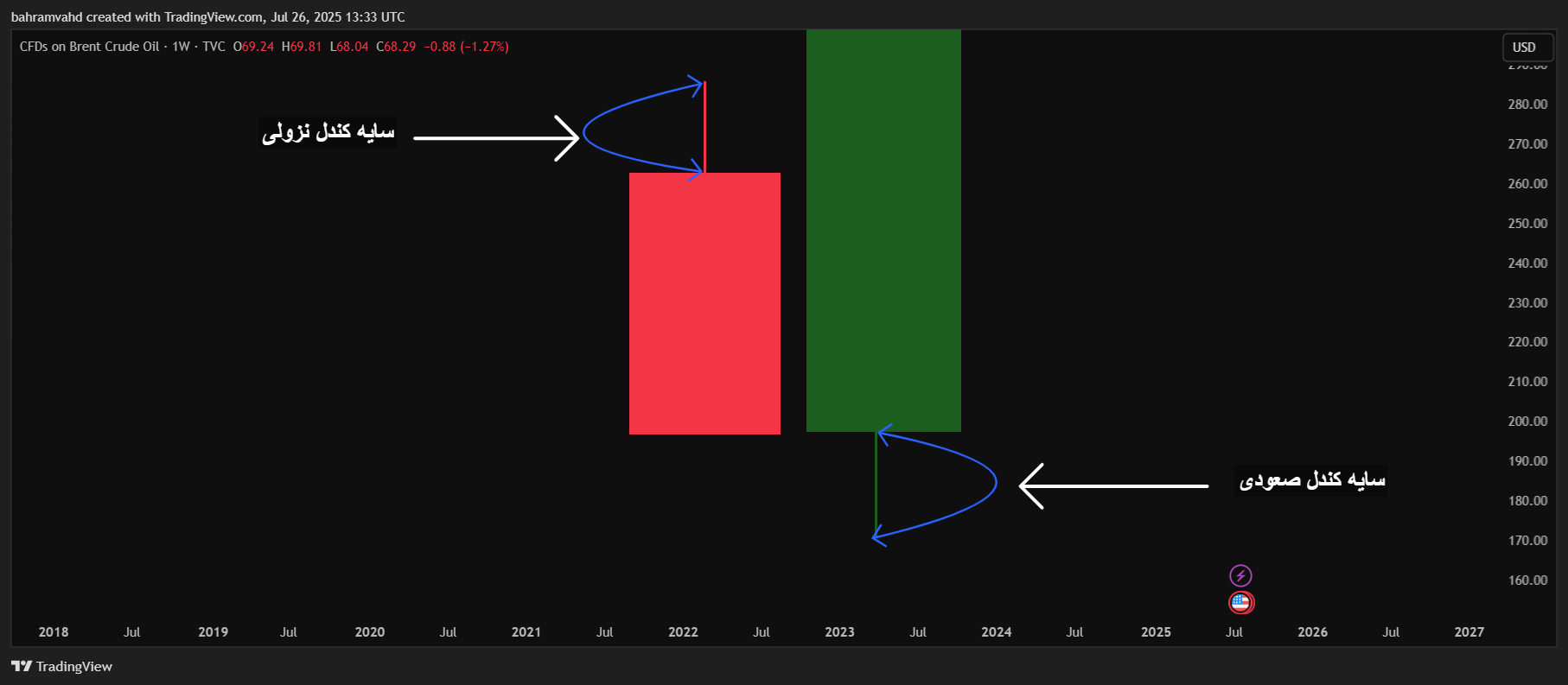 - کمترین قیمت ثبتشده: سایه پایین کندل که تا سطح ۱۷۸.۳۰ دلار کاهش یافته است.
