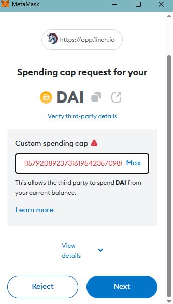 - مجوز محدود بدهید: هیچوقت به قراردادهای هوشمند اجازه دسترسی نامحدود به توکنهایتان ندهید. همیشه مقدار مشخصی برای هر تراکنش تعیین کنید. مثلا اگر میخواهید ۱۳۵ DAI را با ETH مبادله کنید، مقدار Approve را دقیقا روی ۱۳۵ DAI تنظیم کنید.