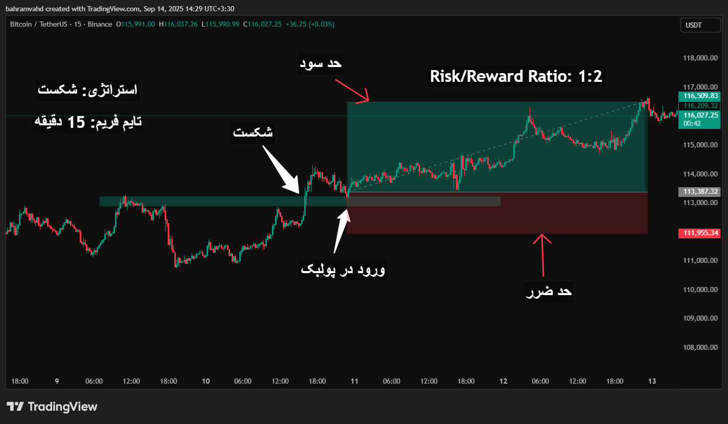 در این روش تعیین حد ضرر بسیار حیاتی است، زیرا شکستهای جعلی (Fakeout) در کریپتو بسیار رایج هستند.