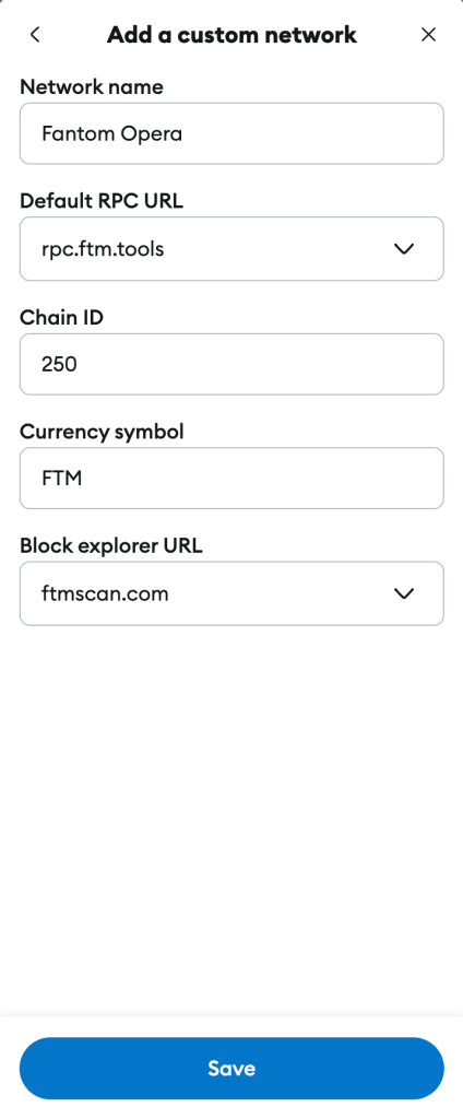 - Network Name: Fantom Opera