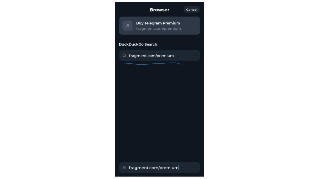 ۳. ادرس اینترنتی fragment.com/premium را در بخش جستجو وارد کنید.