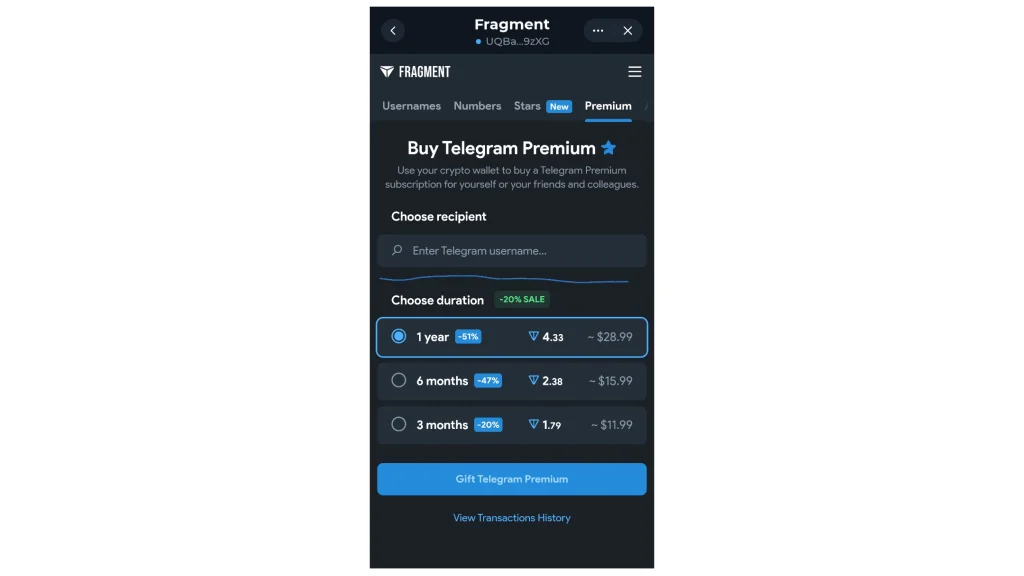 - به پلتفرمی مانند Fragment مراجعه کنید که امکان خرید پرمیوم تلگرام با تون کوین را فراهم میکند.