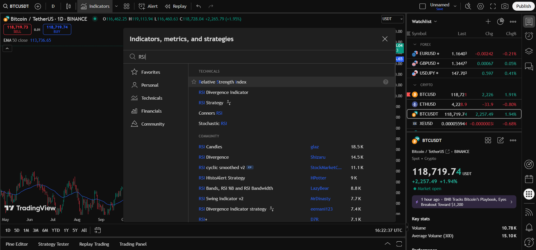 اندیکاتور RSI14 را در بخش پایین نمودار قرار دهید.