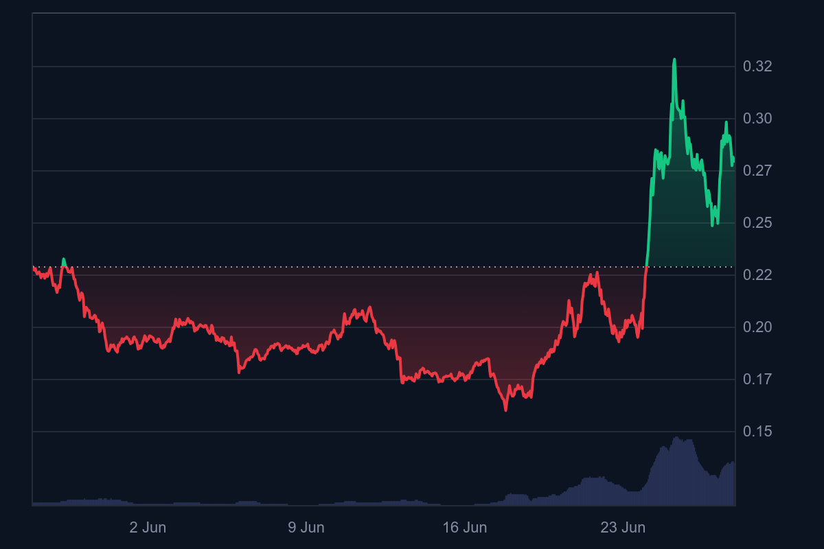 طی ۷ روز گذشته، ارز دیجیتال SEI حدود ۴۰٪ رشد قیمتی را تجربه کرده و از کف ماهانه خود در محدوده ۰.۱۶ دلار بیش از ۱۰۰٪ افزایش یافته است. این روند صعودی در نهایت منجر به ثبت بالاترین قیمت ماهانه (۰.۳۳۳۷ دلار) در تاریخ ۲۵ ژوئن شده و SEI را در صدر جدول رمزارزهای پربازده این بازه زمانی قرار داده است.