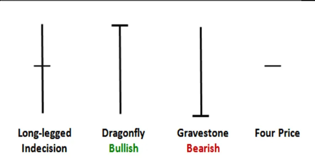 چندین کندل دوجی وجود دارد که هر کدام نام متمایز خود را دارند، همانطور که در تصویر زیر برایتان آوردهایم.