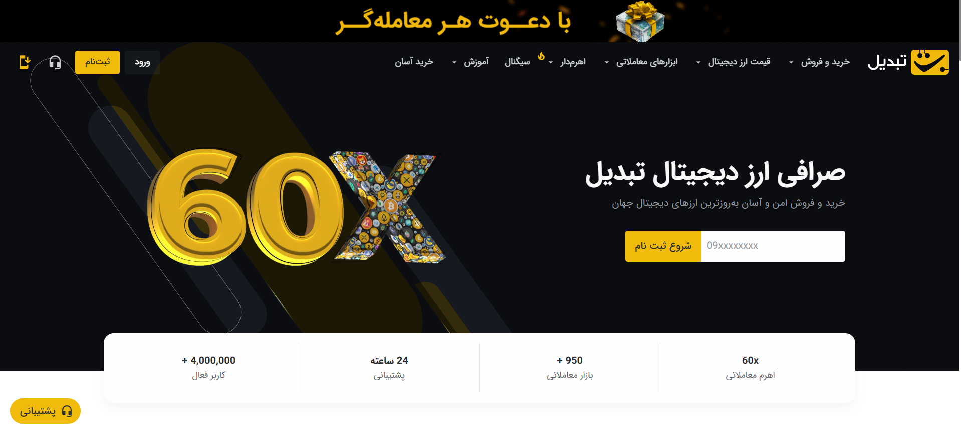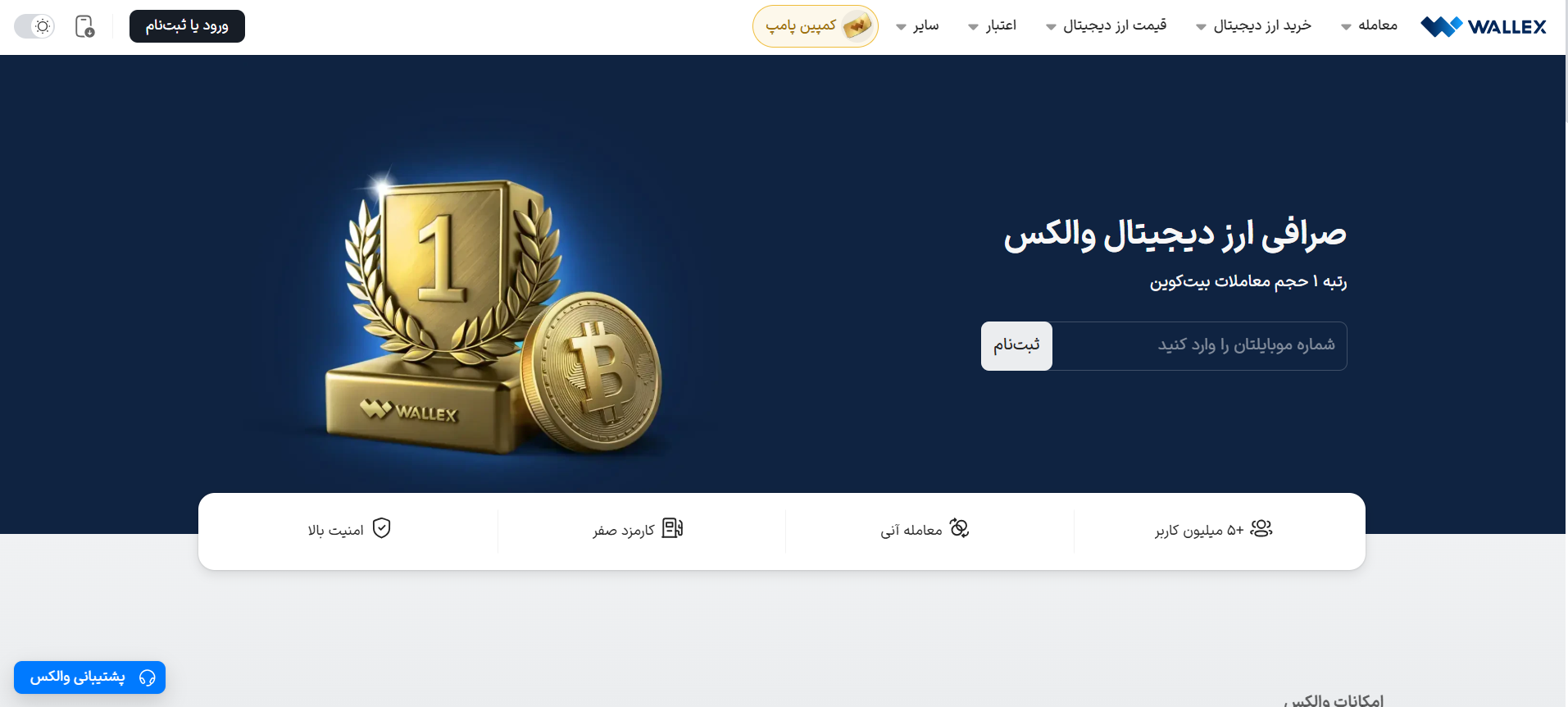 ساختار کارمزد رقابتی و پلکانی پشتیبانی ۲۴ ساعته به زبان فارسی تنوع بیش از ۴۰۰ ارز دیجیتال در بازار ریالی و تتری حجم معاملات روزانه بیش از ۳۰۰ میلیارد تومان و نقدینگی بالا پشتیبانی از معاملات تعهدی |