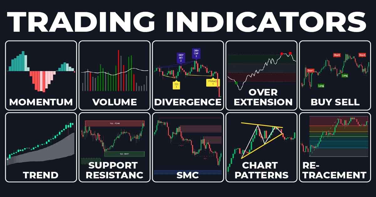 معامله گران میتوانند از اندیکاتوری مختلف برای تولید سیگنالهای خرید یا فروش و شناسایی روندها یا الگوهای بازار استفاده کنند. این ابزارها به طور کلی به دو دسته تقسیم میشوند: اندیکاتورهای همپوشان و اندیکاتورهای اسیلاتور.