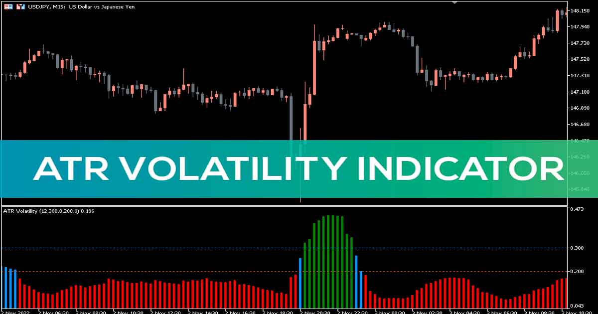 - اندیکاتور (ATR): ATR میانگین فاصله بین قیمتهای سقف و کف را در تعدادی از کندل ها اندازهگیری میکند.