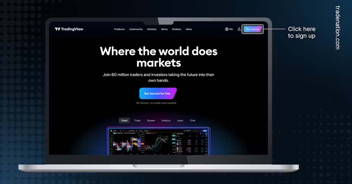 اولین کاری که میبایست انجام دهید این است که وبسایت تریدینگ ویو را در مرورگر خود باز کنید و روی « Get Started » کلیک کنید. سپس یک پنجره دیگر باز میشود که در آن میتوانید روی ” Sign up ” کلیک کنید.