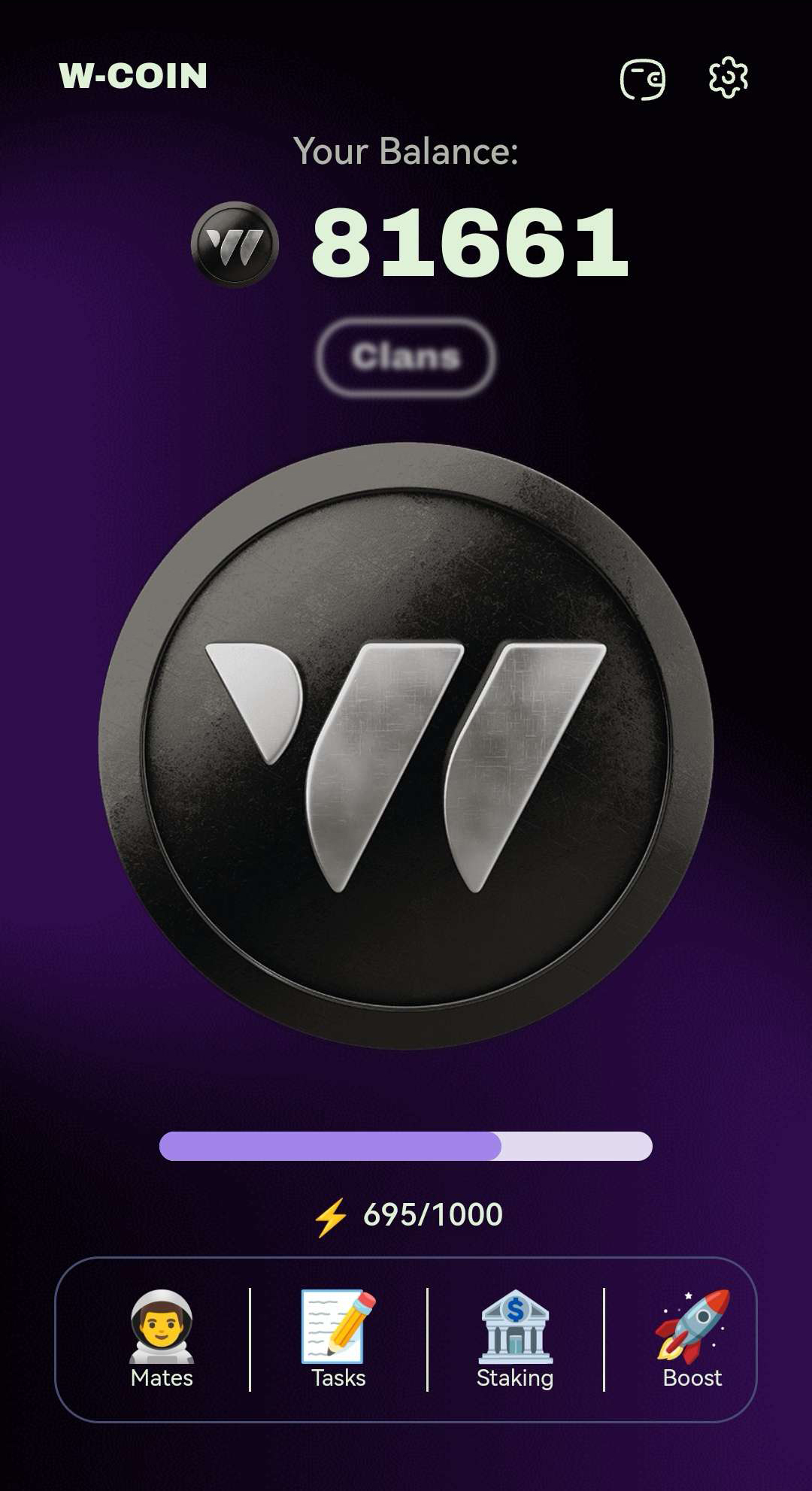 مدل Tap-to-Earn: مانند نات کوین و همستر کمبات، در W-Coin نیز کاربران با ضربه زدن (Tap) روی صفحه، امتیاز یا توکن جمعآوری میکنند.