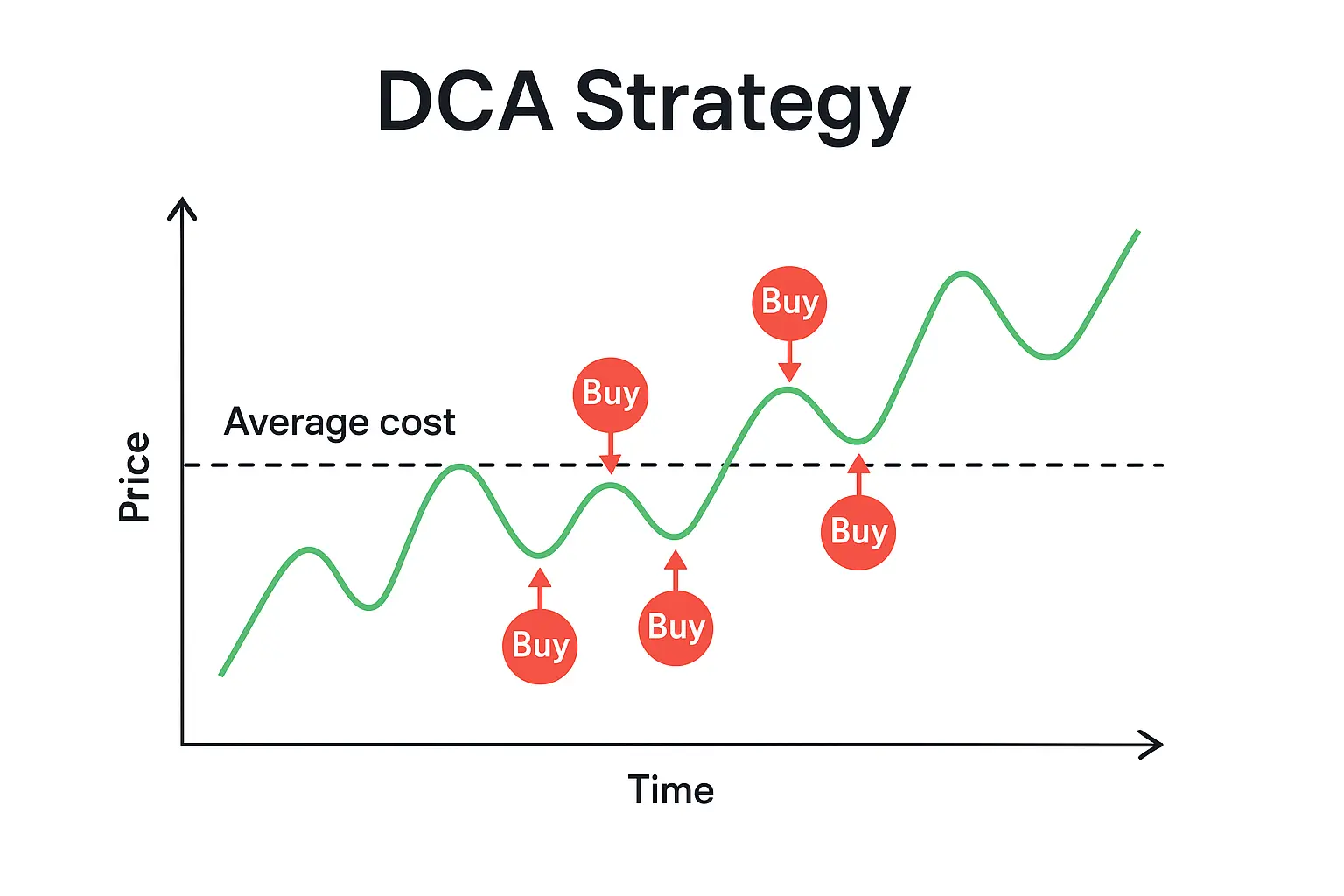 استراتژی DCA به معنای سرمایهگذاری منظم و با مقدار ثابت در یک دارایی دیجیتال طی یک دوره مشخص است، بدون توجه به نوسانات قیمتی. این روش تاثیر نوسانات بازار را کاهش میدهد، زیرا سرمایه در طول زمان تقسیم میشود. با این استراتژی، سرمایهگذاران در قیمتهای پایین مقدار بیشتری و در قیمتهای بالا مقدار کمتری خرید میکنند، که در نهایت میانگین هزینه خرید را کاهش میدهد.