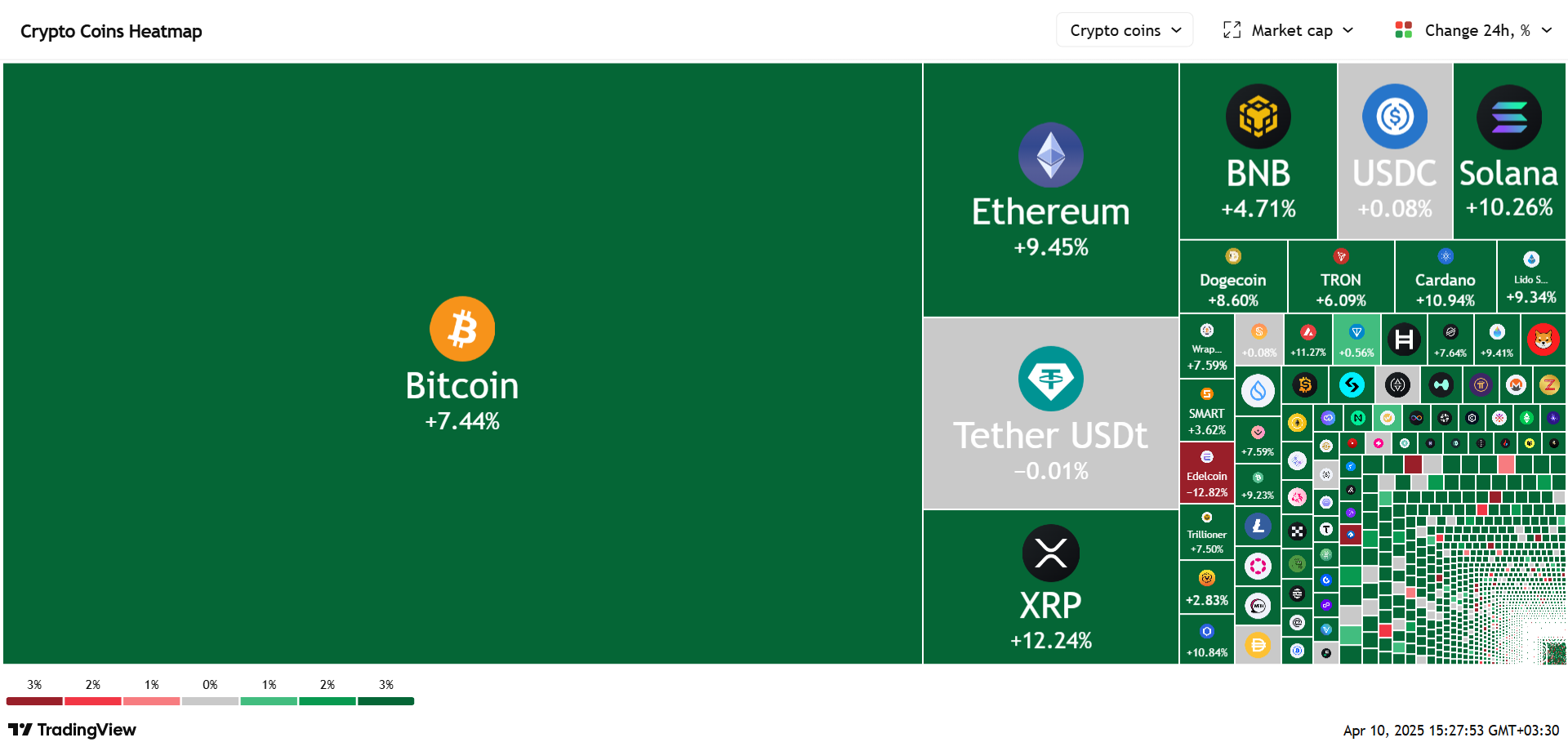 ارزش کل بازار کریپتو هم به ۲.۶۳ تریلیون دلار رسید؛ تنها اندکی پایینتر از زمانی که ترامپ هفته گذشته طرح تعرفههای جدید را معرفی کرده بود.