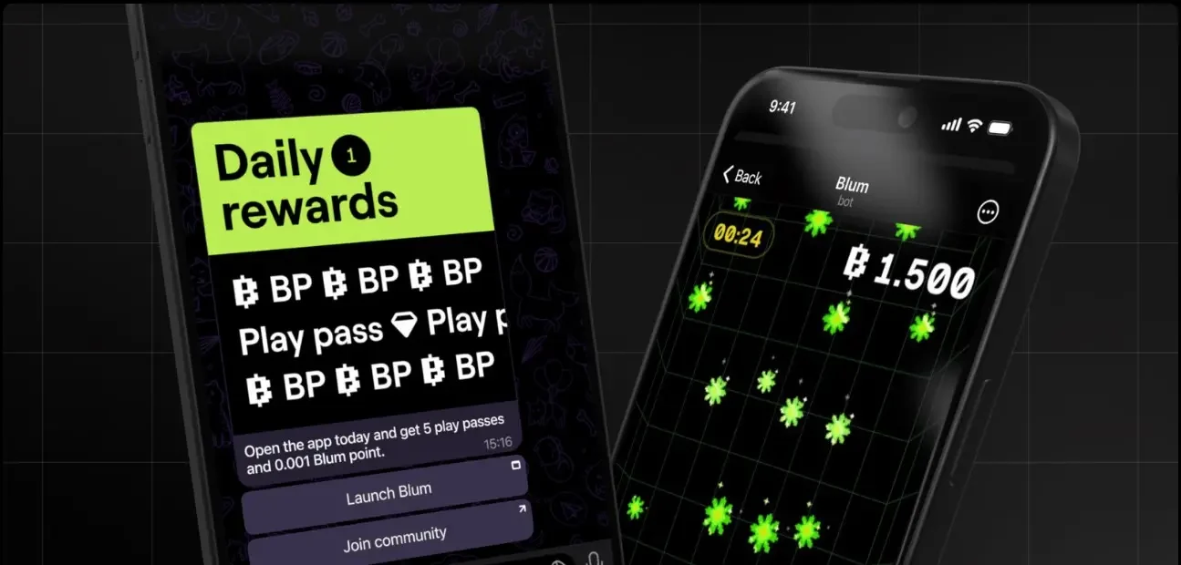Blum یک مینیاپلیکیشن تلگرامی است که ترکیبی از یک صرافی رمزارز و بازیهای تلگرامی است. کاربران میتوانند با شرکت در بازیهای سادهای مانند «Drop Game» (که در آن با لمس دانههای برف روی صفحه گوشی امتیاز جمع میکنند)، امتیازهای «Blum Points» دریافت کنند. این امتیازها قرار بود در قالب یک ایردراپ عمومی در سال ۲۰۲۵ به توکنهای قابل معامله تبدیل شوند.