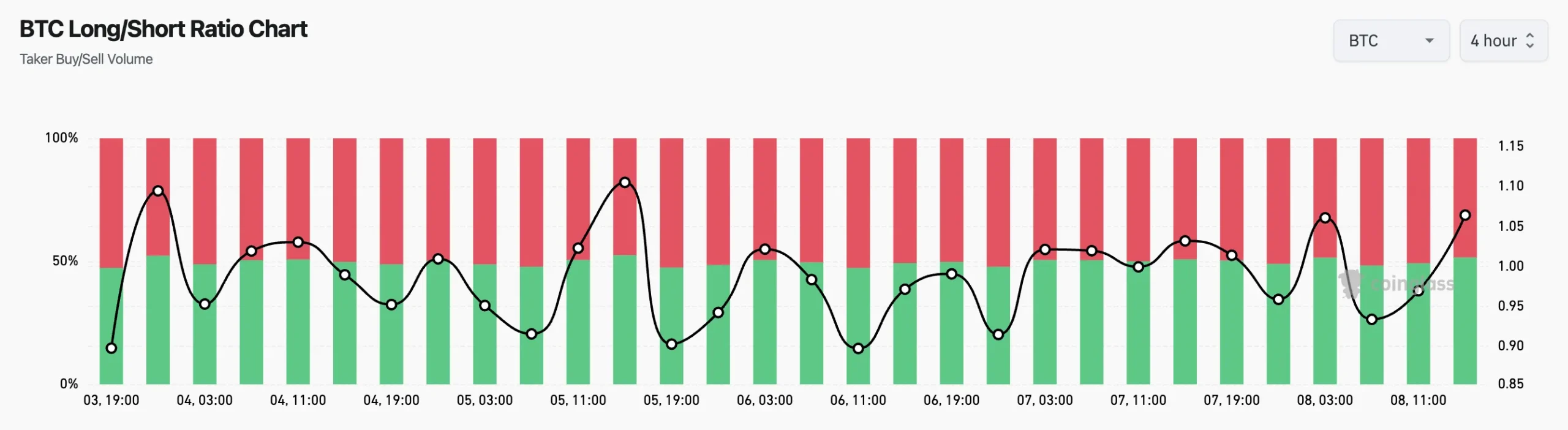 رشد صبح امروز قیمتها نشان داد که هنوز خوشبینی زیادی در بازار باقی مانده است؛ که این میتواند به کل بازار کریپتو کمک کند تا در برابر تهدید تعرفهها مقاومت کند. پوزیشنهای لانگ بیتکوین به ۵۴٪ رسیدهاند، که نشان میدهد بیشتر معاملهگران روی بازگشت قیمت به سطوح بالاتر شرطبندی کردهاند.