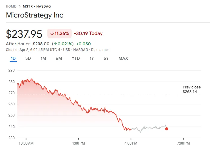 چین بزرگترین شریک تجاری آمریکا است و این تعرفههای گسترده میتوانند ضربهای مهلک به بازارها وارد کنند. با این حال، بازار کریپتو خود را بهطور ویژهای آسیبپذیر نشان داده است. شرکتهای کریپتویی حاضر در بورس، پس از اعلام تعرفهها، یک روز دیگر نیز سقوط سنگینی را تجربه کردند. سهام شرکت MicroStrategy بیش از ۱۱٪ افت کرد.