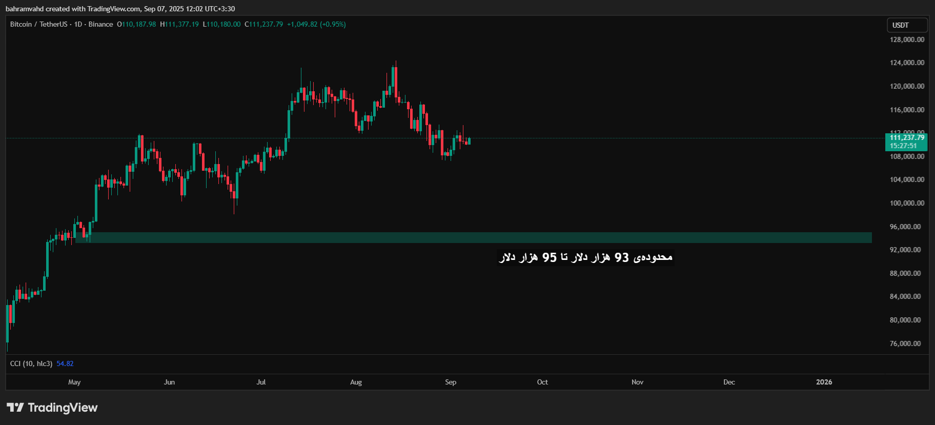 تحلیلگران با بررسی الگوهای تاریخی معتقدند که محدوده ۹۳ تا ۹۵ هزار دلار میتواند کف مناسبی برای بازگشت قیمت باشد. این محدوده بهعنوان حمایت کلیدی شناخته میشود.
