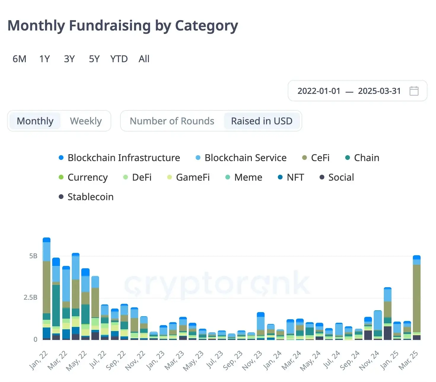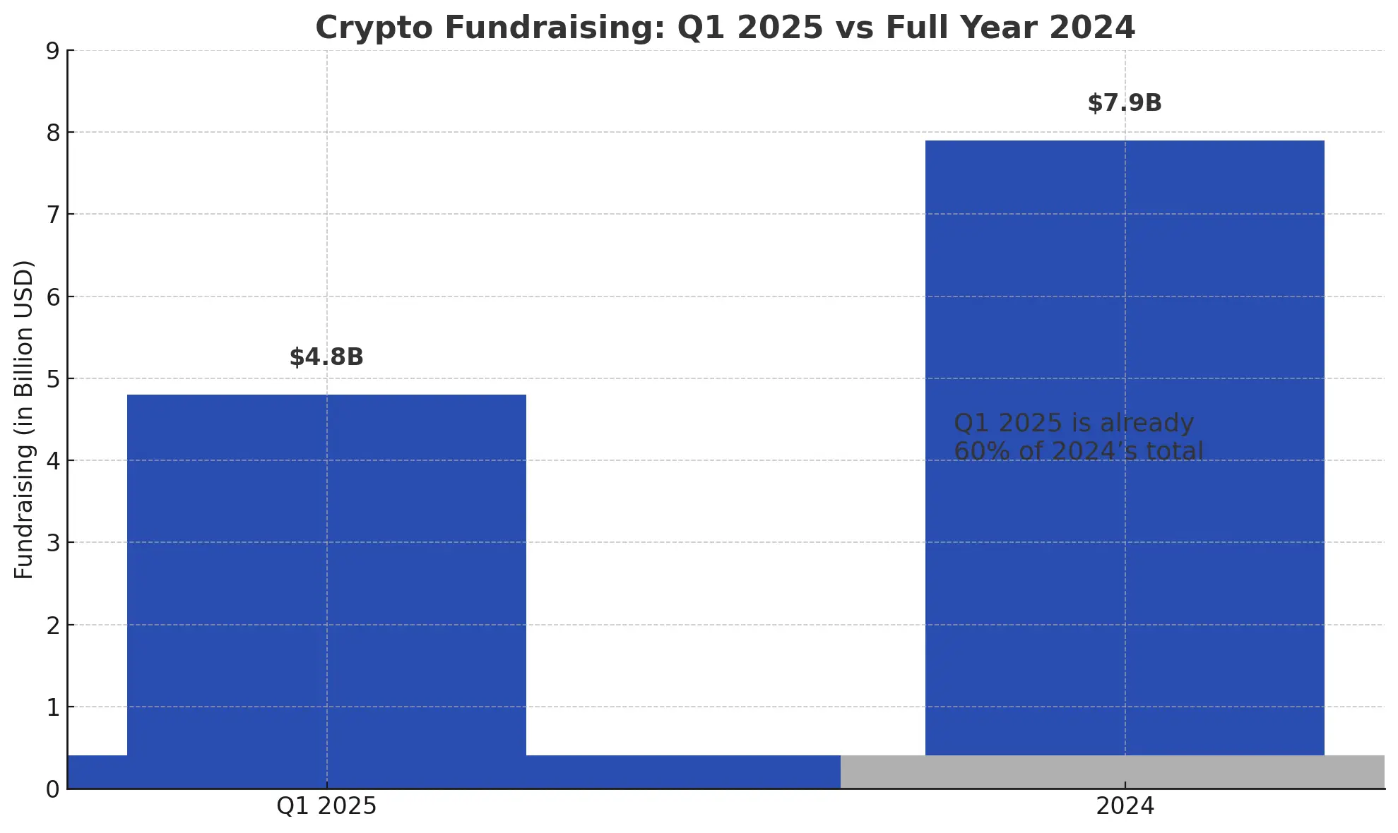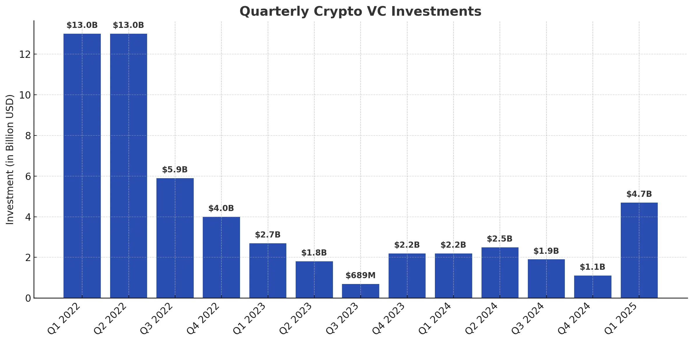 سهماهه اول سال ۲۰۲۵ نشاندهنده بازگشتی قابلتوجه در بازار سرمایهگذاری خطرپذیر کریپتو بود؛ جایی که مجموع سرمایه جذبشده به ۴.۸ میلیارد دلار رسید؛ بالاترین رقم فصلی از سهماهه سوم ۲۰۲۲ تاکنون.