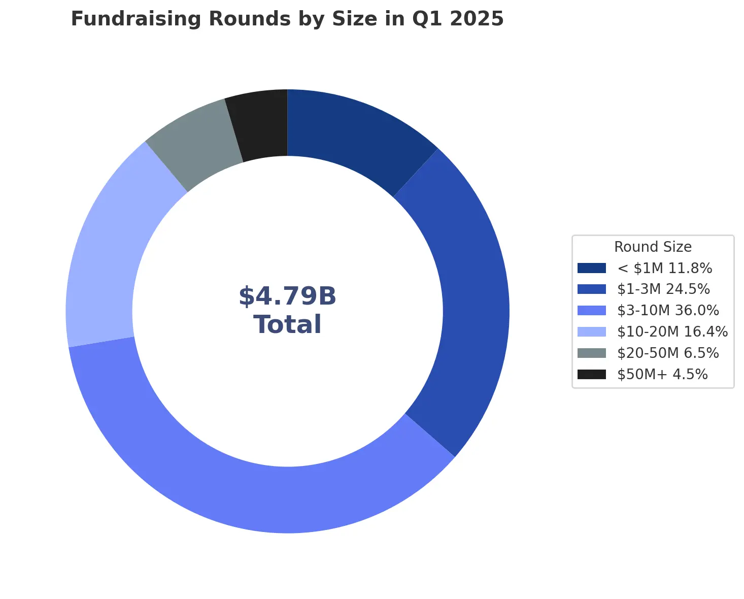 در سهماهه نخست سال ۲۰۲۵، جذب سرمایههای کوچکتر از ۱۰ میلیون دلار همچنان نزدیک به دو سوم از کل معاملات را به خود اختصاص دادهاند. با این حال، حضور سرمایهگذاریهای بزرگ نیز بهطور فزایندهای قابل مشاهده است.