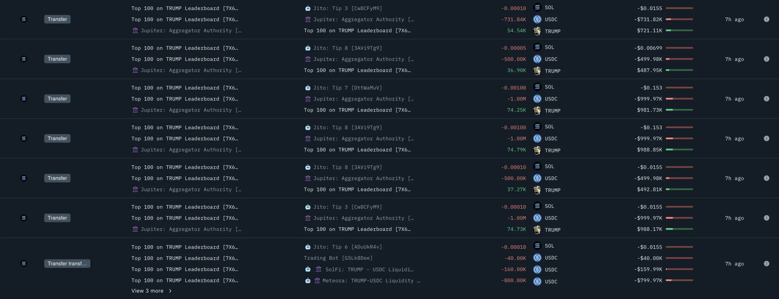 او ۴۲۷ هزار توکن TRUMP را با پرداخت حدود ۵.۷۳ میلیون دلار USDC خریداری کرد (میانگین قیمت هر توکن: ۱۳.۴۰ دلار). از این مبلغ، ۵ میلیون دلار مستقیما از صرافی بایننس برداشت شده بود.