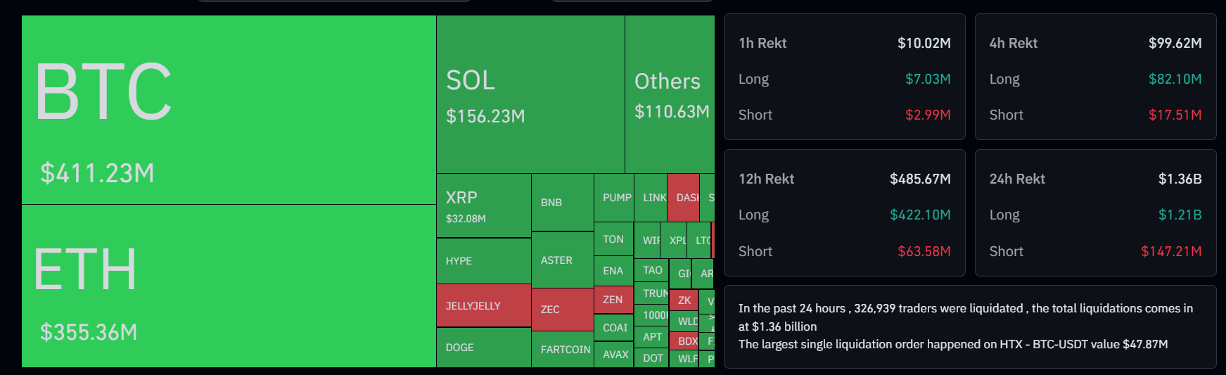 بر اساس دادههای پلتفرم CoinGlass، در روزهای ۱۰ و ۱۱ اکتبر بیش از ۱۹ میلیارد دلار از موقعیتهای اهرمی در بازار مشتقات کریپتو لیکوئید شده است. بیشتر این موقعیتها در صرافیهایی مانند Binance و OKX بسته شدند. چنین سطحی از لیکوئیدیشن از زمان سقوط صرافی FTX در سال ۲۰۲۲ تاکنون مشاهده نشده بود.