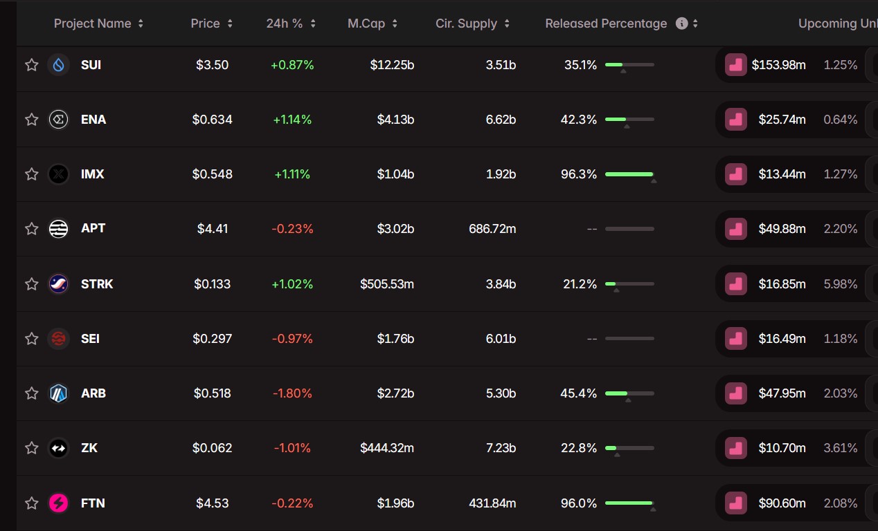 - Arbitrum: آربیتروم (ARB) یکی دیگر از راهکارهای لایه دوم که آزادسازیهای دورهای آن همواره مورد توجه است.