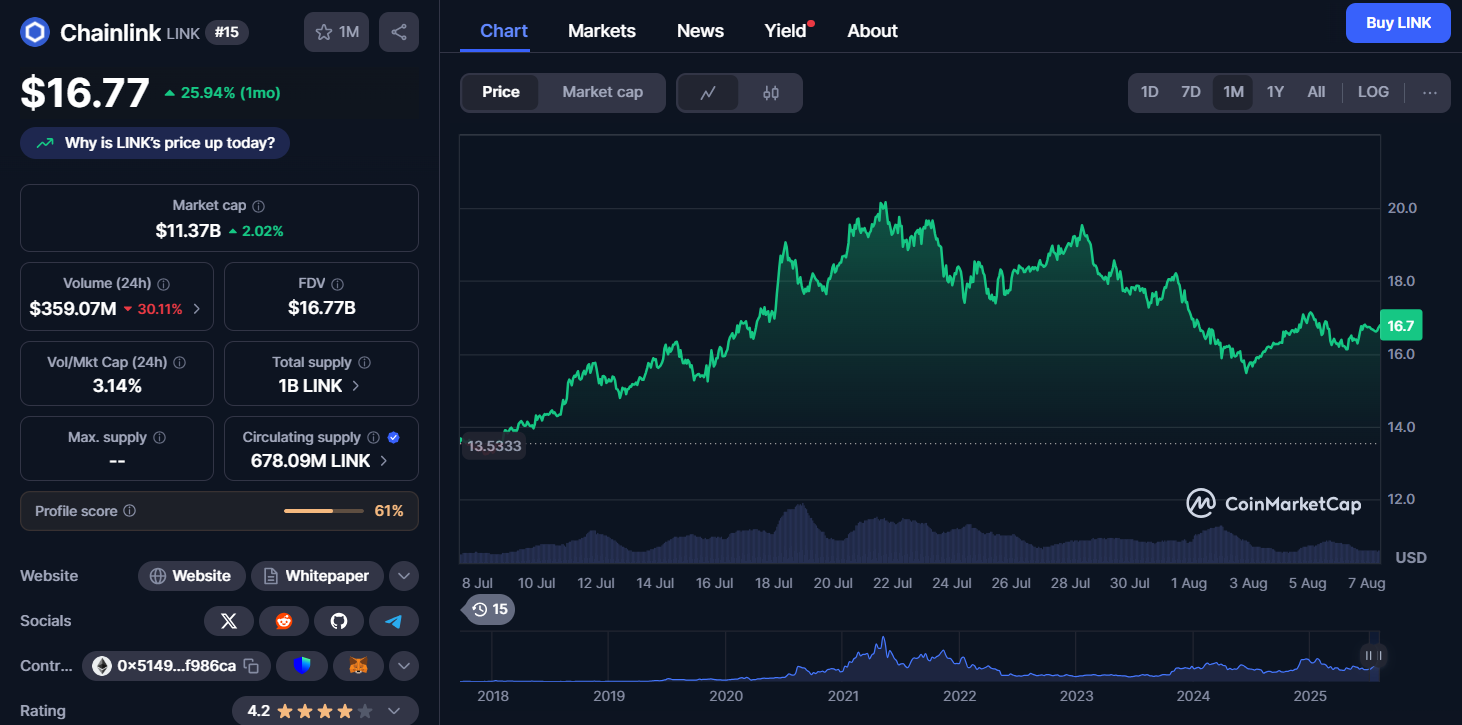 با رشد اپلیکیشنهای بینزنجیرهای، نیاز به دادههای امن و قابلاعتماد افزایش یافته است. چین لینک بهعنوان رهبر بخش اوراکل، در آگوست ۱۷٪ رشد کرد و ۲۵ یکپارچهسازی جدید را به شبکه خود اضافه کرد. کاربرد گسترده آن در دیفای و پروژههای Web3، این پروژه را به یکی از گزینههای جدی سرمایهگذاری تبدیل کرده است.
